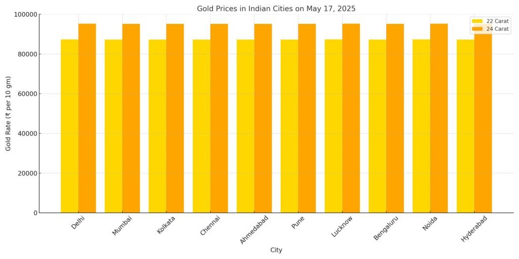 Gold, one of India’s most trusted forms of investment, is seeing a sharp price correction this week. After touching a historic high of ₹1 lakh per 10 grams earlier this year, gold prices have now dropped by almost ₹5,000, settling around ₹95,000 per 10 grams on May 17. This marks the second day of decline in a row and is catching the attention of both investors and general buyers across the country.